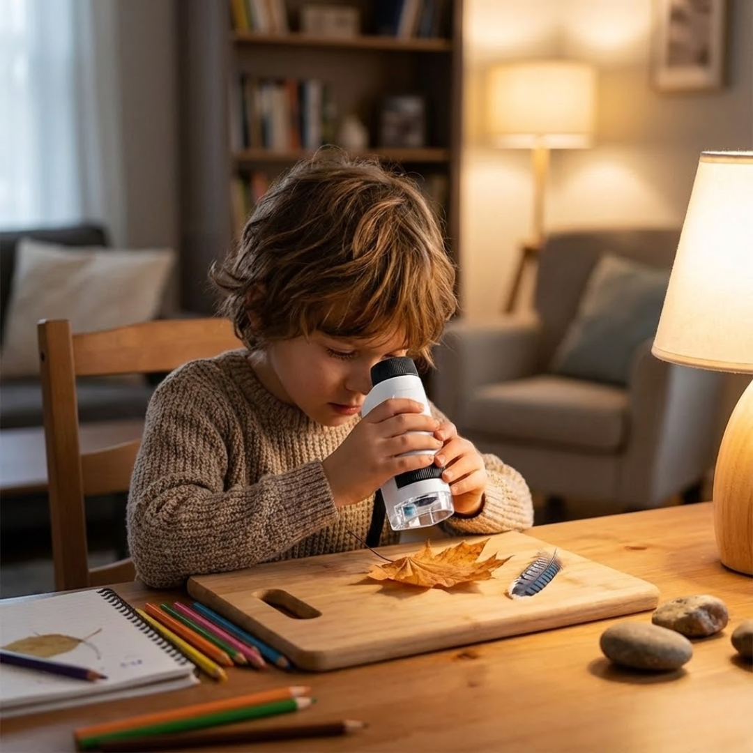 Votre enfant découvre le plaisir d'observer de près. Il manipule, teste et se concentre calmement sans écran.